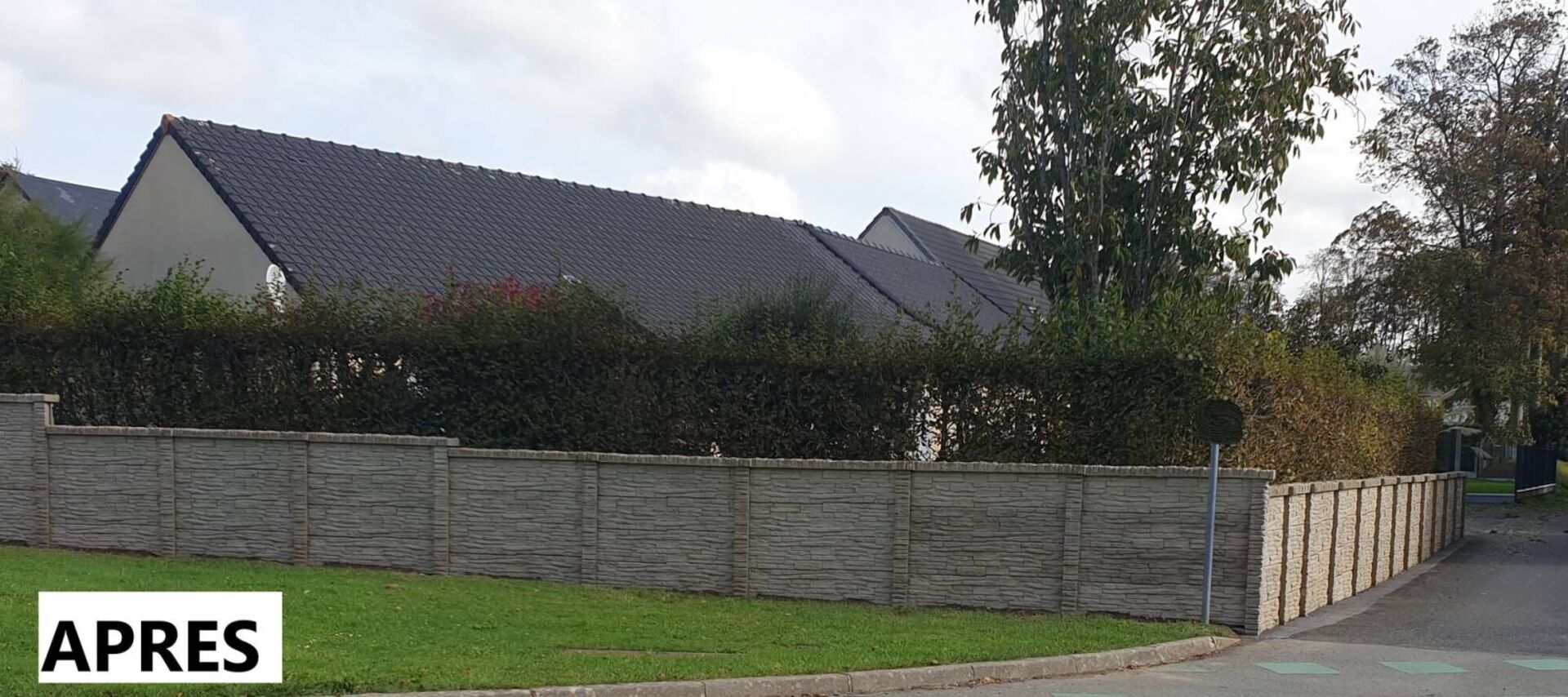clôtures pal béton imitation pierre sèche, simple ou double face et de différente hauteurs (1.35m à 2.45m).